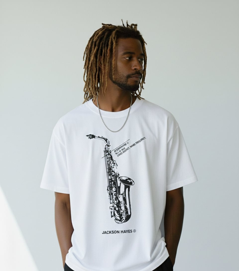 MECHANICAL LINE -SAX- T WHT | 白 サックス線描画 / JACKSONHAYESⒸ