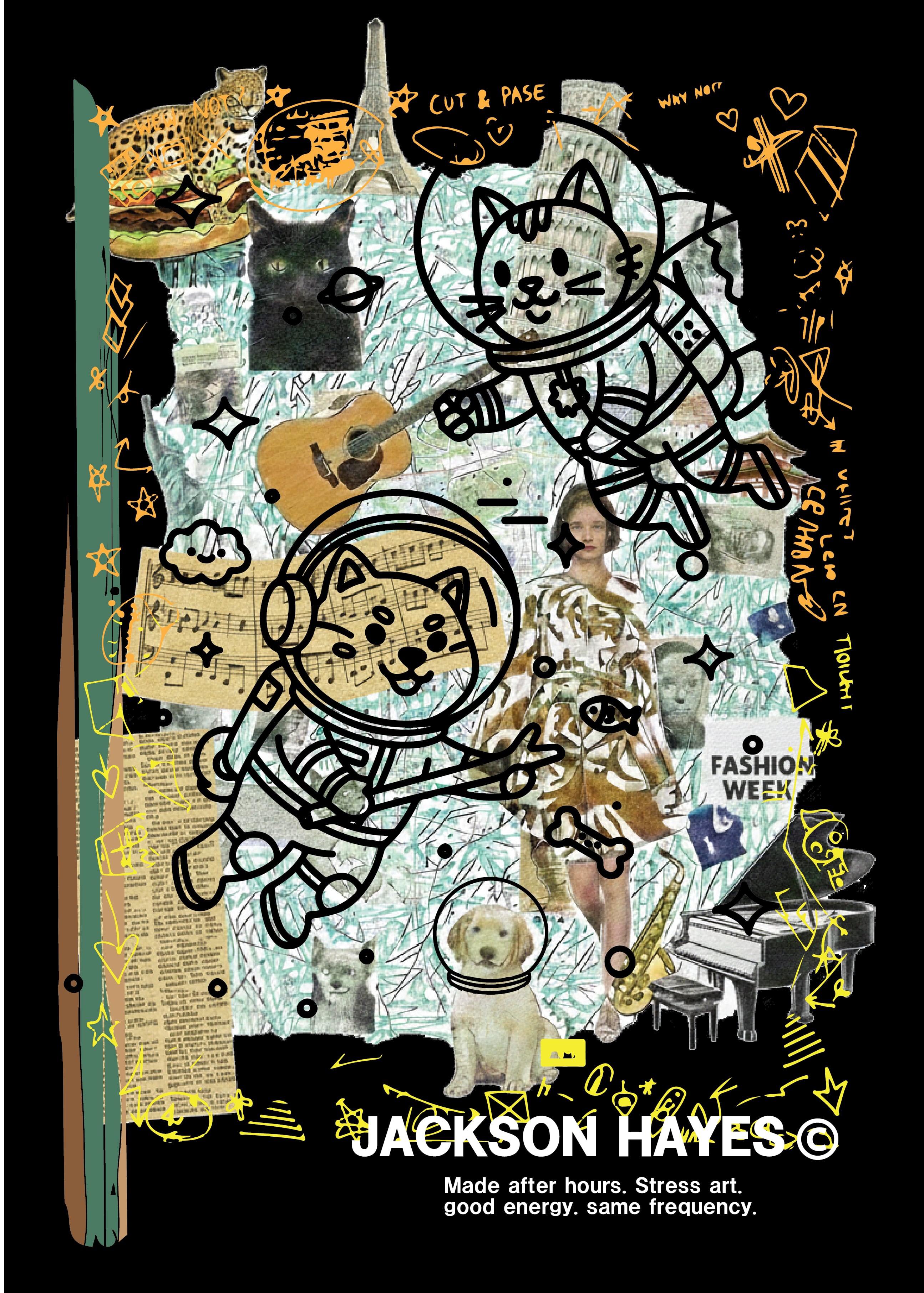 PLANET ROCK PAWS T SHIRTS Tシャツ BLK | 黒 プラネットロックパウズコラージュ / JACKSONHAYESⒸ