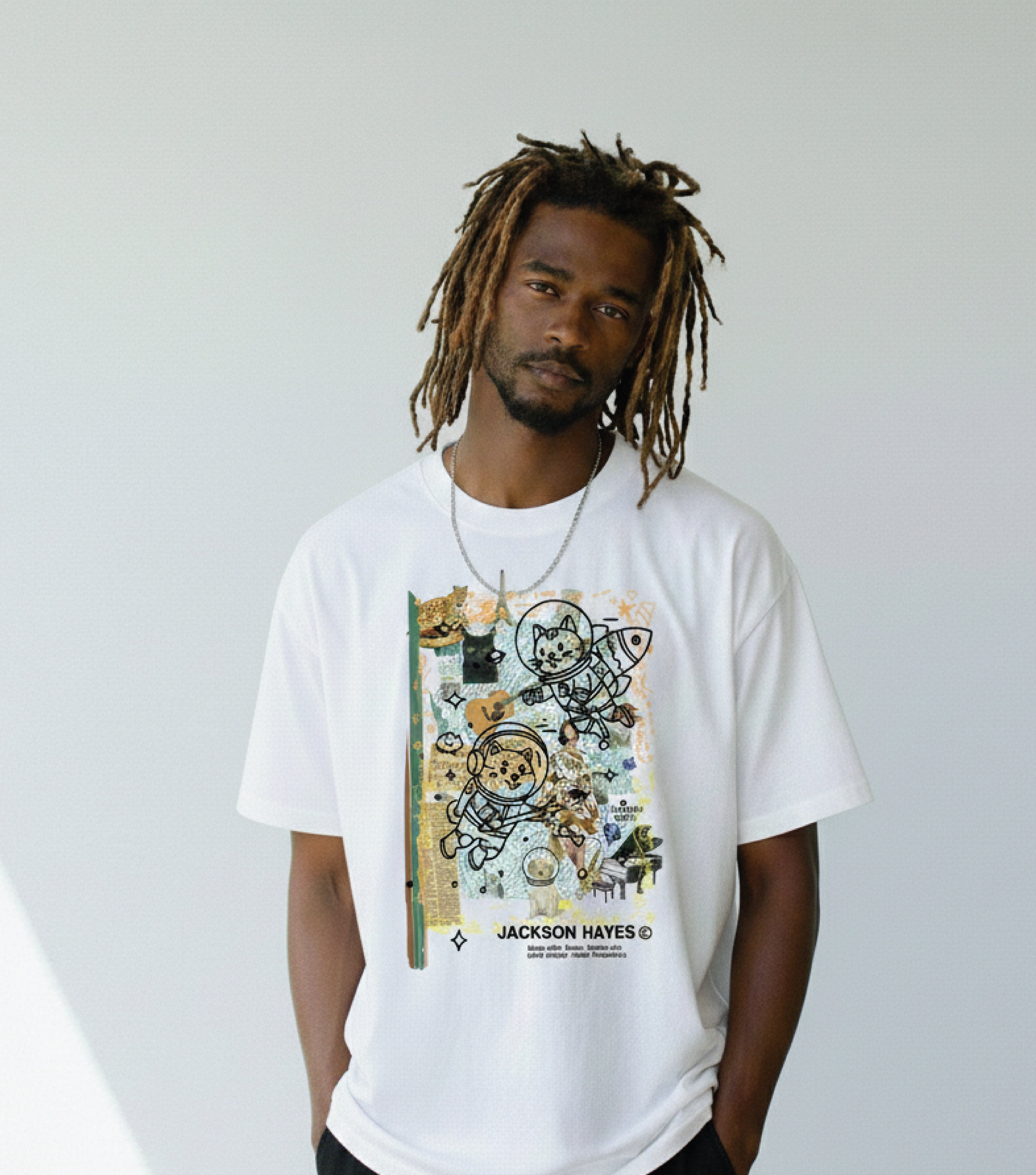 PLANET ROCK PAWS T SHIRTS Tシャツ WHT | 白 プラネットロックパウズコラージュ / JACKSONHAYESⒸ