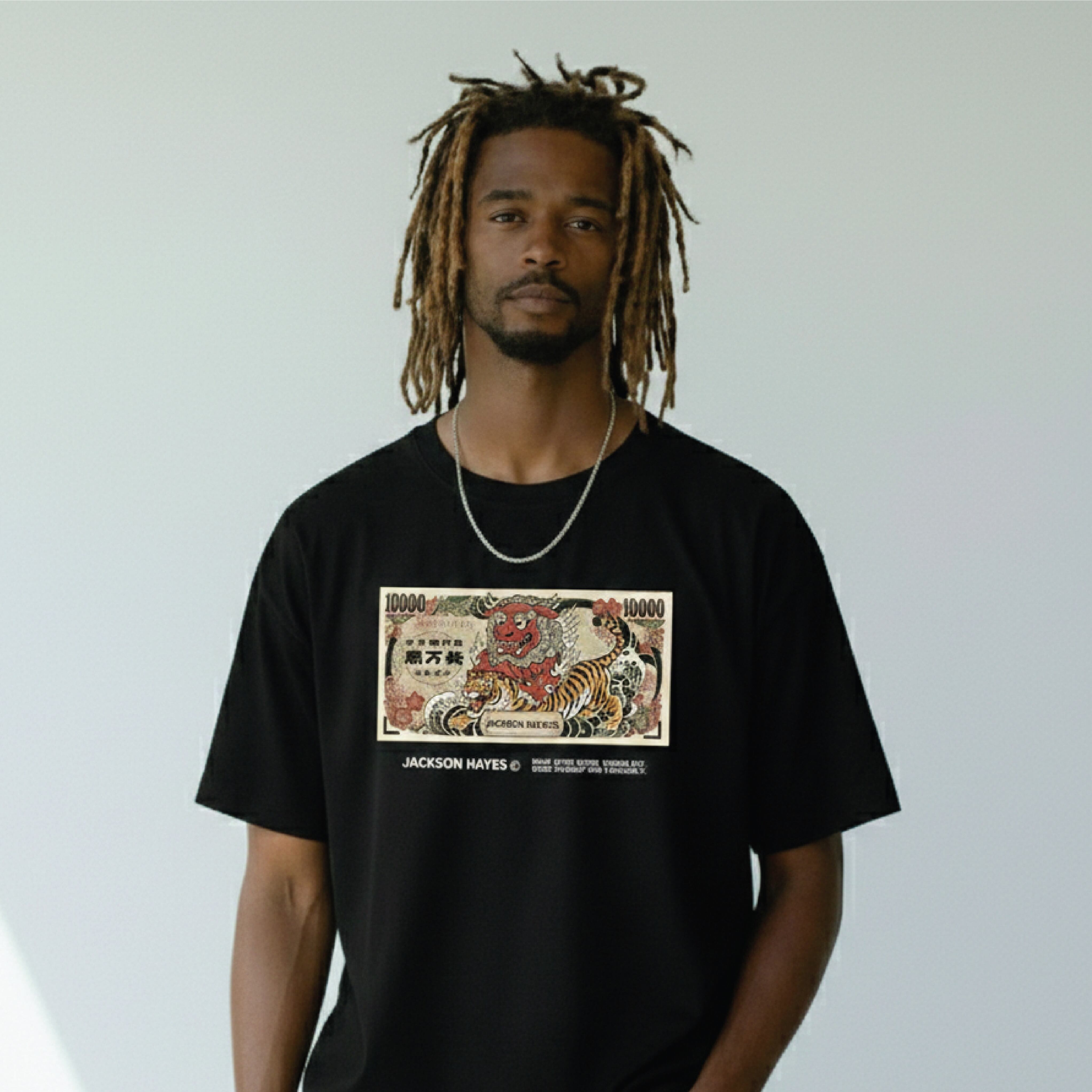 JAPANESE BANKNOTE T SHIRTS Tシャツ BLK | 黒 紙幣パロディ / JACKSONHAYESⒸ