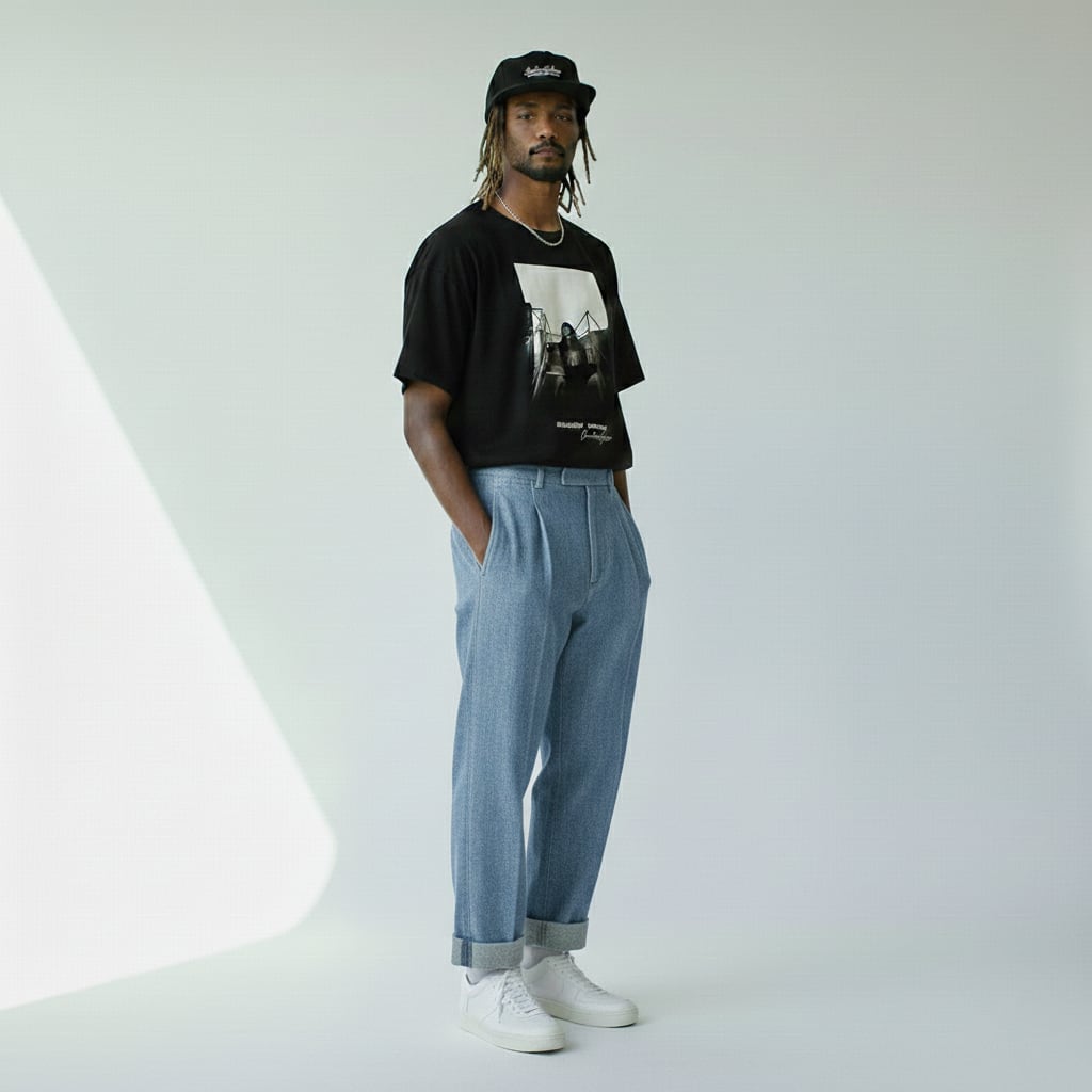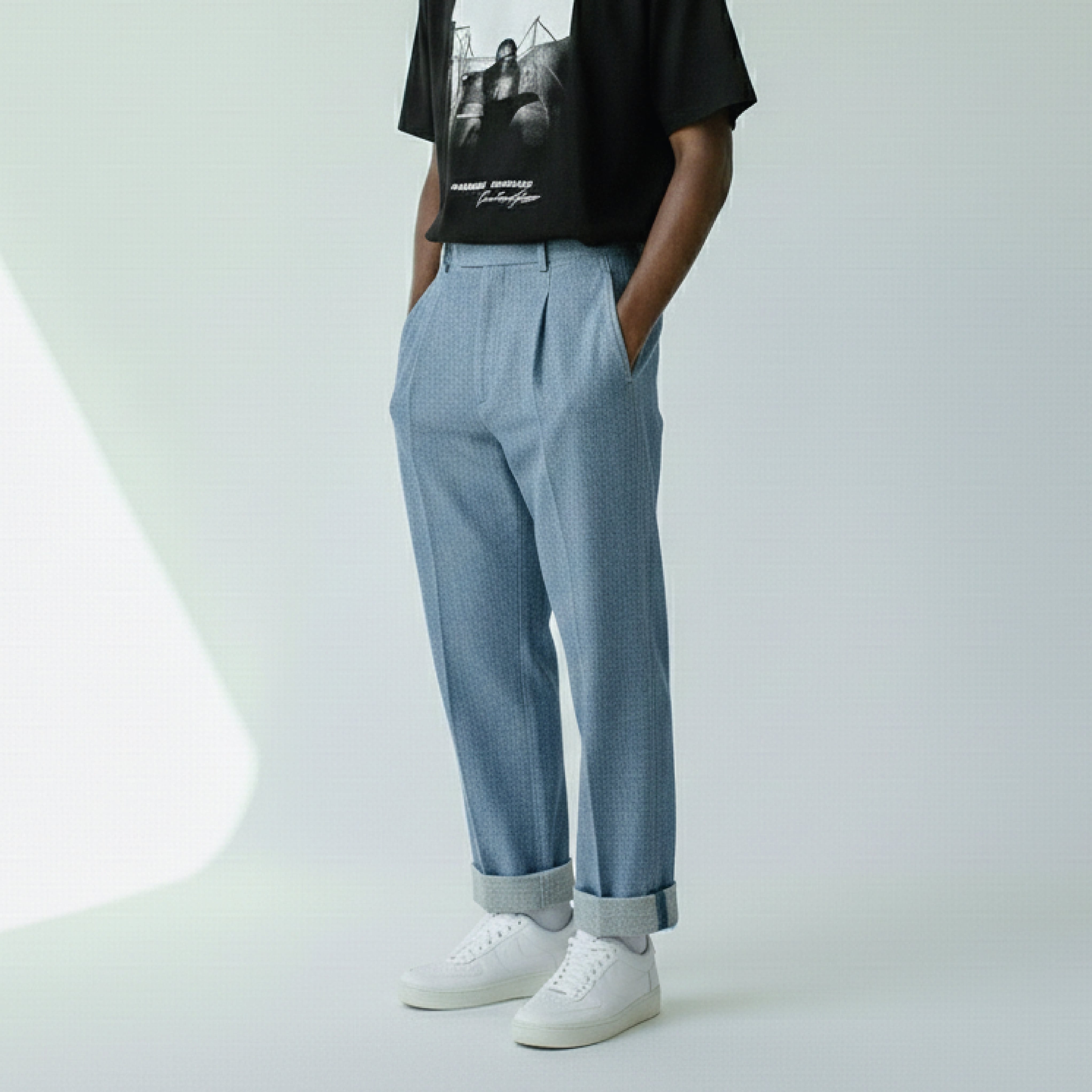 JACKSONHAYESⒸ SINGLE-PLEAT TAPERED CUFFED JEANS ワンタックテーパードジーンズ Lt.Blue / 水色