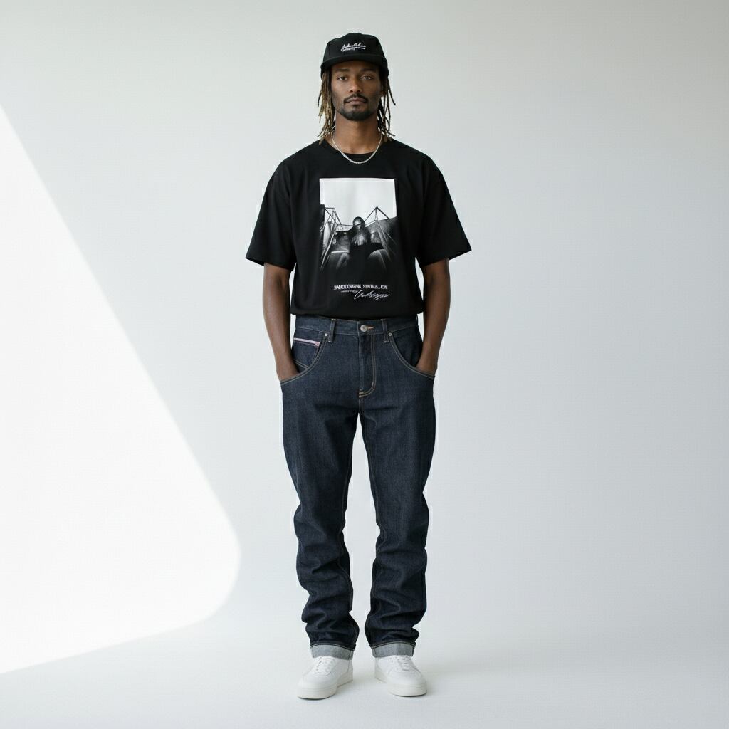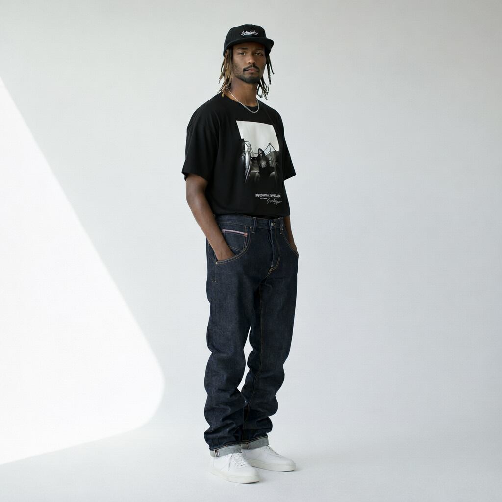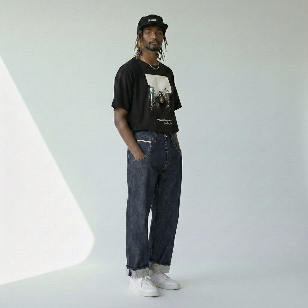 赤耳セルビッジならではのクラシックな佇まいと、程よくゆとりのあるシルエット。