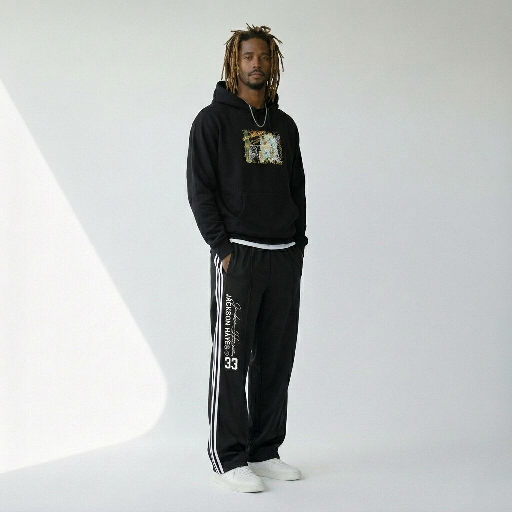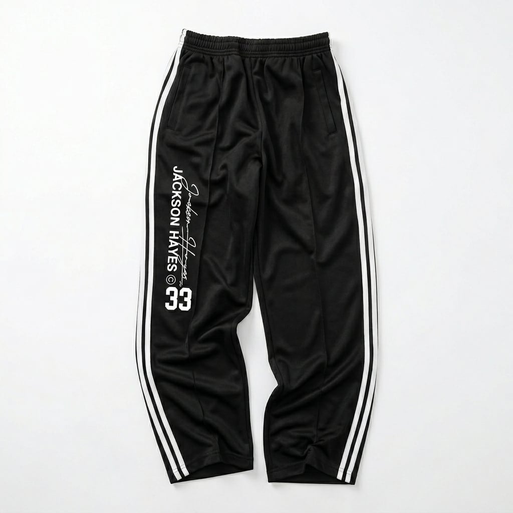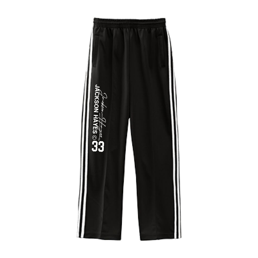 DOUBLE-STRIPE TRACK PANTS / ライントラックパンツ / 黒×白(ライン&プリント) / BLK×WHT JACKSONHAYESⒸ
