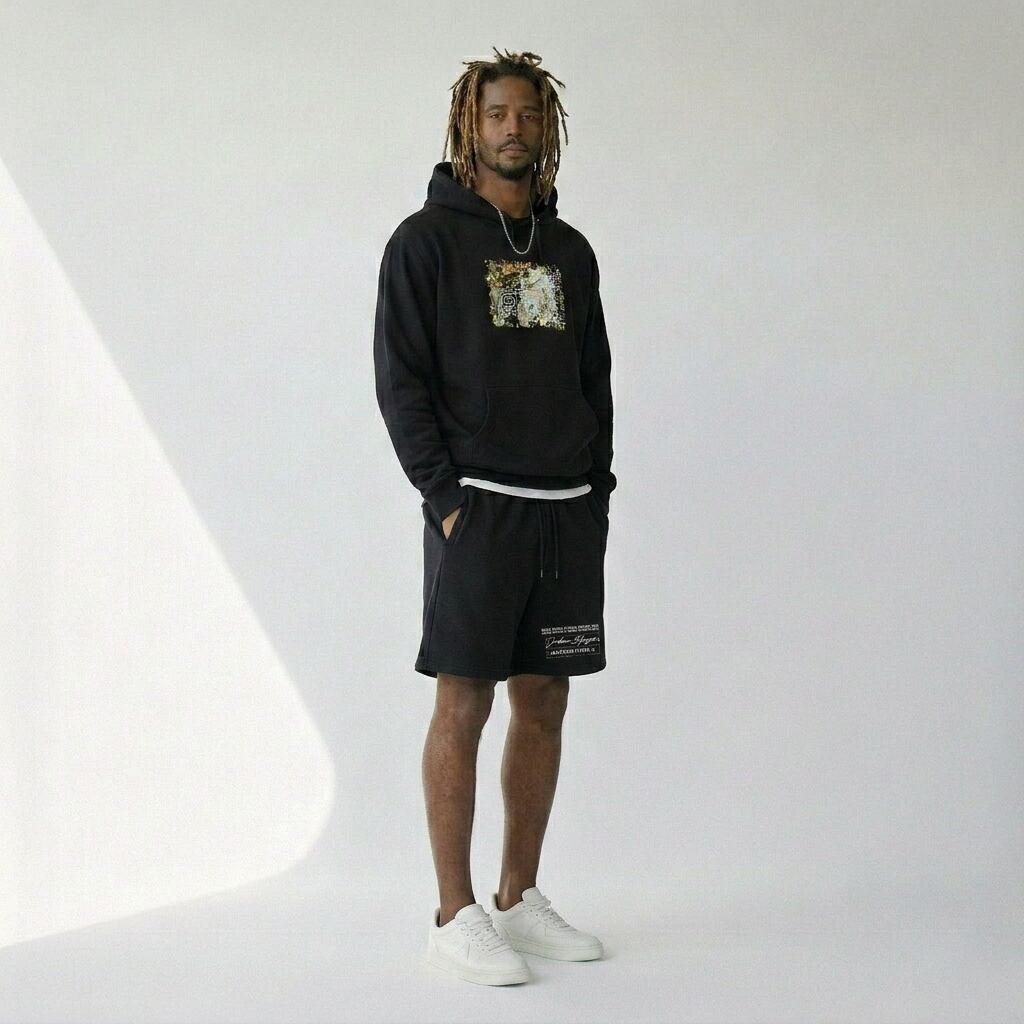LOGO SWEAT SHORT PANTS / スウェットショートパンツ / 黒×白(プリント) / BLK×WHT JACKSONHAYESⒸ
